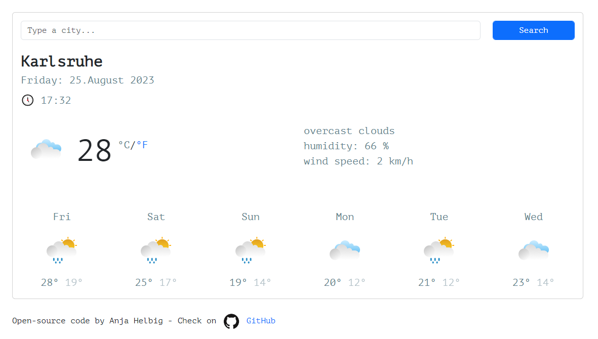 The weather app was the first bigger project, for which HTML, CSS,